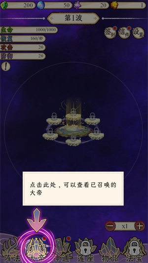 点击大帝按钮可以查看已召唤的大帝