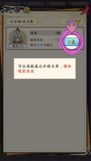 可以消耗晶元升级大帝,增加祖星攻击