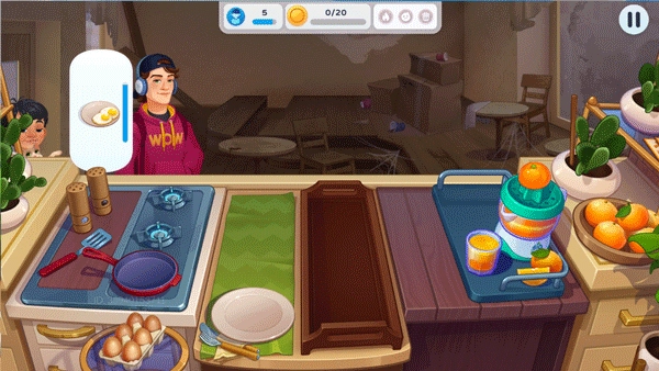 1. 点击挑选食材,依照食谱里的步骤开展烹饪,做好菜肴的准备工作,再把它端给顾客。 2. 对厨房设备进行升级,加快烹饪速度、提升菜肴品质,保障餐厅的高效运转。
