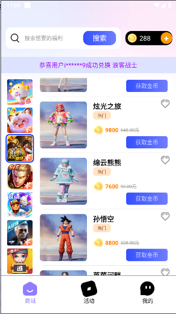 如果你有足够的金币,直接的点击兑换就可以了!