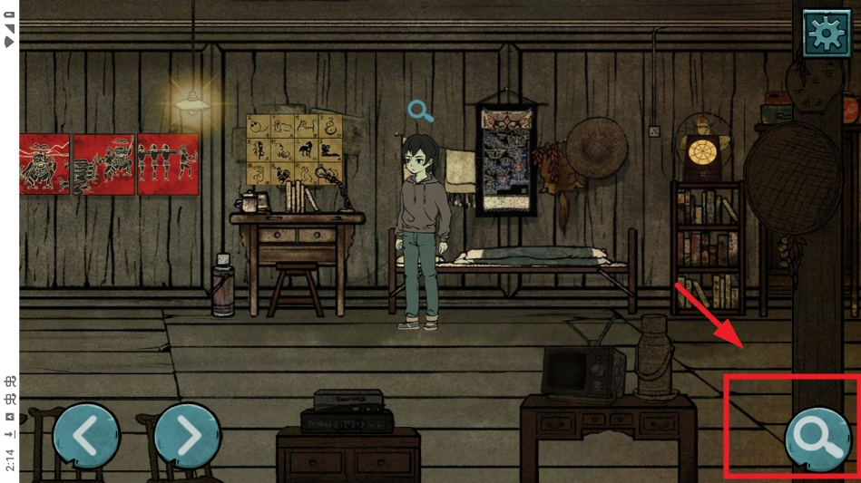 完成任务后,在房间中找个位置,点击右下角放大镜