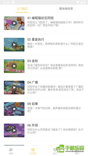 进入“公开课”,有入门指引和丰富的编程课程。