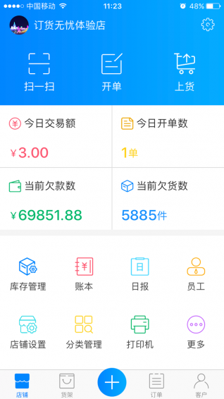 用户通过手机可以随时随地对店铺的员工、客户、货品、资金、账本进行管理和数据查询分析