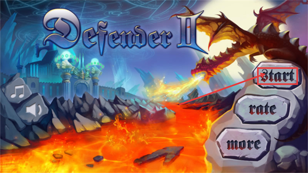 1、进入游戏后点击【Start】按钮,开启《Defender-II》的防御冒险之旅,先熟悉初始界面的各项功能,随后即可开始挑战关卡。