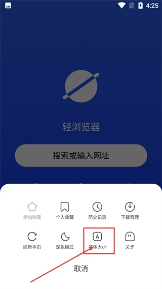 当功能菜单弹出后,点击【字体大小】这一选项,即可进入到字体显示大小的设置界面。