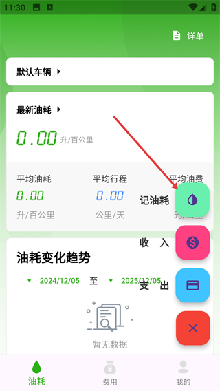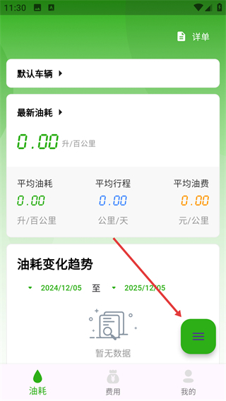 在展示【油耗】-【今日-2025-12-05】这类信息的页面上,点击右下角的功能按钮,即可打开操作选项。