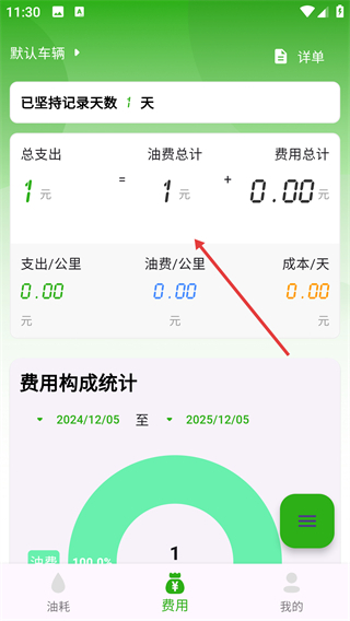 在【费用】页面,能查看【油费总计】-【总支出】这类统计数据,从而知晓油耗相关的费用状况。