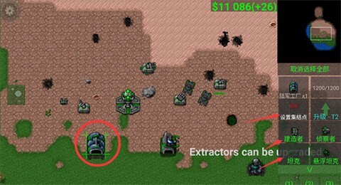 5、多人模式下,进入游戏后先建造几座炮塔,重点守护中间区域。接着生产几辆坦克,负责后方的防御。要是资源充裕,就多造些实验坦克和建造者。当对手即将发射核弹时,不必建造反核设施,赶紧把建造者转移到远处安全地带——就算基地没了也没关系,只要有建造者就能重建一切。之后重新搭建基地,发起反击即可。