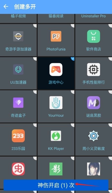 用户能够挑选想要多开的应用程序或者游戏,接着点击蓝色按钮来完成确认操作。