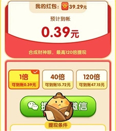 4、可以多尝试合成几次,只要红包金额累计到0.38元就能申请提现了。