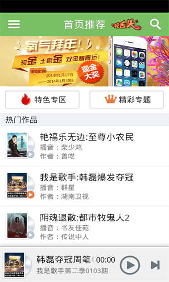 - 界面精美,一键悦听