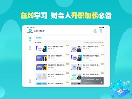 正保会计网校HD版(原中华会计网校名称已停止使用),整合听课、直播、刷题等多元功能,是专为财会人群打造的移动学习平台。平台致力于构建完备的终身教育体系,全程陪伴财会人走过整个职业生涯。