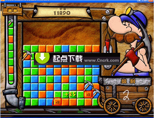 这是一款快速消除类游戏,你将扮演一个淘金工人,在矿洞里,看着不断挖掘出来的各种颜色矿石涌出,呈现在你的筛选履带上