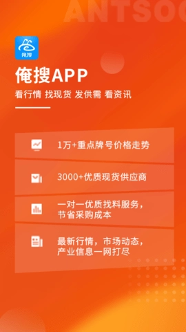 俺搜作为一款面向化工与塑料行业采购商和供应商的强大商家采购应用,为用户提供全方位服务。平台以数据驱动为核心,助力用户精准把握市场行情与供需动态,有效提升采购效率与销售成效。此外,俺搜还推出一系列增值服务,涵盖供应链金融服务,为用户解决资金难题、提供融资支持;以及物流配送服务,帮助用户攻克物流障碍,提供快速、安全、便捷的物流体验。在俺搜平台上,您能找到塑料相关的所有资源,让材料生意变得轻松简单!
