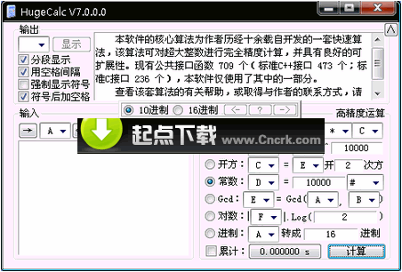 为了与广大网友分享 HugeCalc 带来的便捷,该版公开了 HugeCalc.dll 的所有接口文件(同时支持 MBCS + UNICODE 版),大家可以更自由地进行高精度计算或自开发,而无须再依赖于 Mathematica 等大型软件