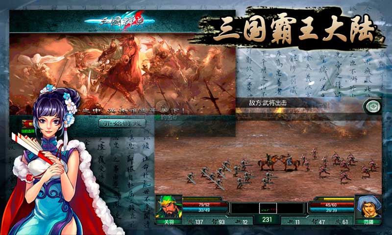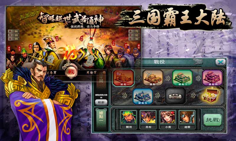 三国霸王大陆又一款以三国为主题材料的手机游戏大作重磅出击,三国霸王大陆安卓版集策略和ARPG为一体,共数使个关卡,三国名将名臣齐聚,让俺也“穿越”一回三国。