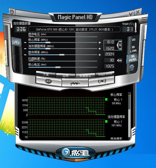 影驰魔盘中文版是DIY发烧友为MagicPanel打造的一款显卡辅助。影驰魔盘中文版的主要功能是对电脑显卡进行超频和监控,在XP系统中完美运行使用。很多游戏玩家都备有这款软件,以备不时之需。