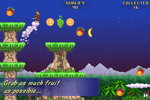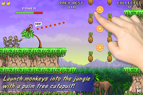 空中飞猴不以画面取胜,像素风的画面十分怀旧,不过这些休闲为主的小游戏,玩起来还是挺有意思的,可以打发不少无聊的时间。今天这款 Monkey Flight 的玩法很简单,几只调皮的猴子,眼馋空中的各种水果,怎么办呢,它们想出了一个办法,用树做成“弹弓”,将自己弹射出去,在空中抓取越多的水果分数越高,当然别忘了猴子最喜欢的香蕉哦!游戏采取他家惯用的三星评级制度,来挑战全三星吧!【游戏特点】