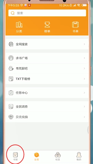 手机打开【小书阁】,在主页面下方中找到并点击【书架】,进入书架页面