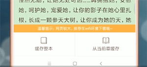 在阅读模式中,单击屏幕,弹出的菜单下方中点击【缓存】