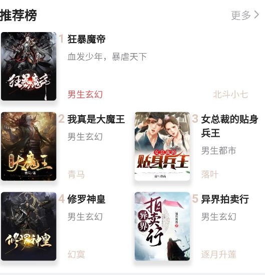 展示热门小说或根据阅读量、评分等指标进行排名。