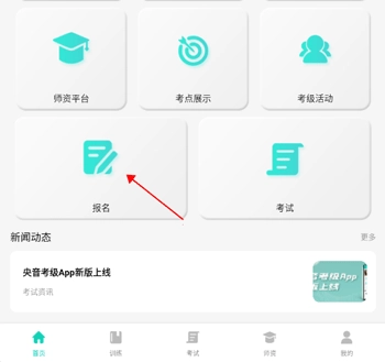 1、在央音考级首页点击“报名”;