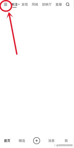 打开快手应用,点击界面左上角的三条横线图标。