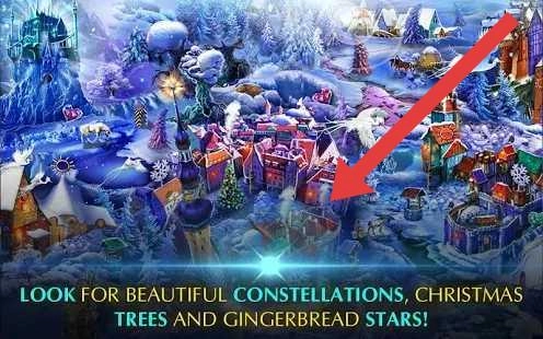 2、切换到雪景小镇场景,根据提示去寻找星座(CONSTELLATIONS)、圣诞树(CHRISTMAS-TREES)和姜饼星(GINGERBREAD-STARS),通过探索和收集这些元素,来解锁新的区域。