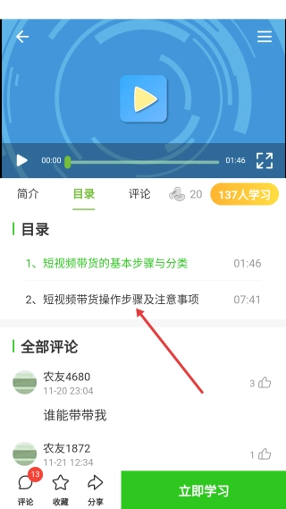 4、进入课程目录页面后,找到并点击对应的章节,就能开启学习之旅了。