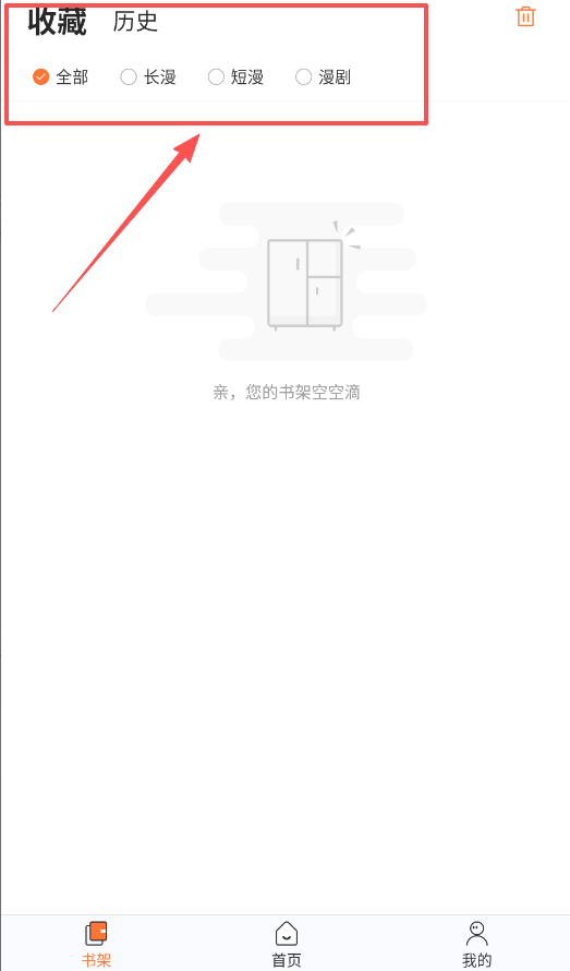 4、您可以对自己的阅读内容进行个性化管理,在这里能查看收藏记录和阅读历史,还能把喜欢的作品添加到书架中。