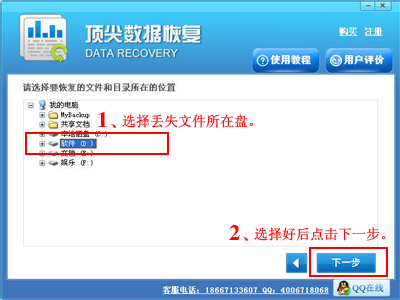 1.如果您丢失的文件在哪个分区,请恢复数据到另外的分区上,以免造成数据覆盖。例如丢失的数据在D盘,则恢复数据到C,E,F盘都可以。