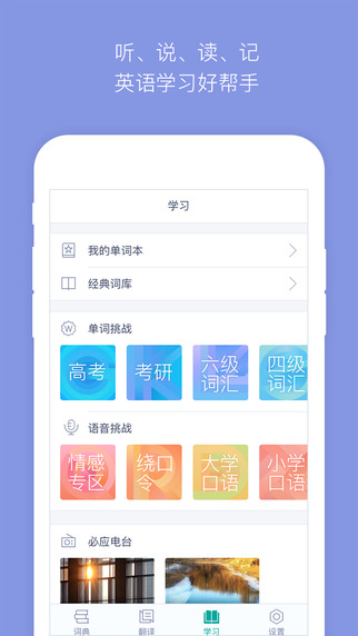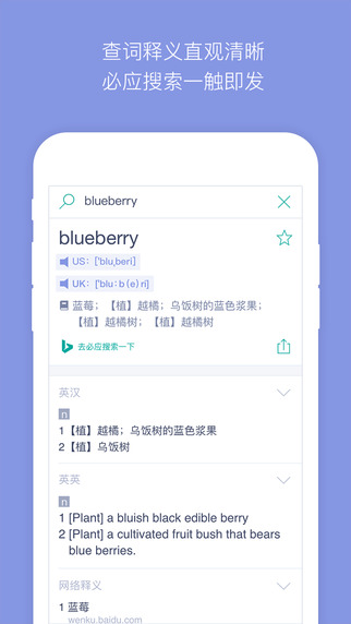 必应词典iPhone离线词库内置10万多个英语常用句子,能够翻译长短句子,拥有单词朗读和强大的搜索建议功能,按照你的习惯输入,特别是遇到不会拼写的语句单词时能够给予提示。【软件特点】