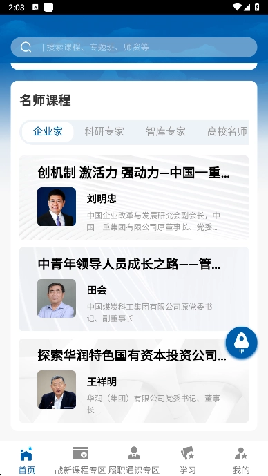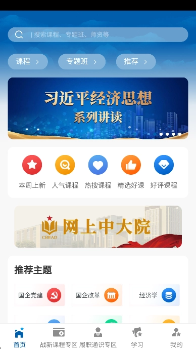 1、在本站完成国企学习应用的安装后,进入首页就能浏览到各类相关服务课程。