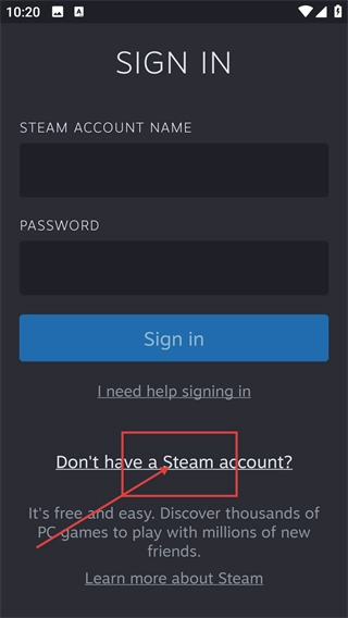 1、在【SIGN-IN】界面,要是还没有【Steam-account】,可以点击对应的提示进入注册流程。