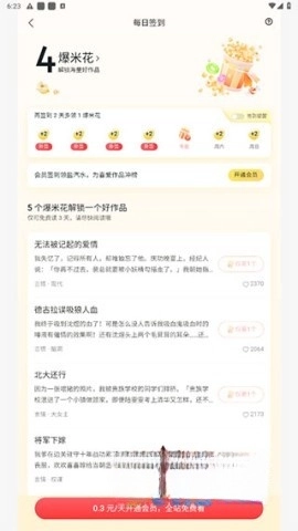 每天登录并完成签到,就能领取专属的“爆米花”道具,用它来支持心仪的作者、为喜爱的故事加油,还能催促更新呢!