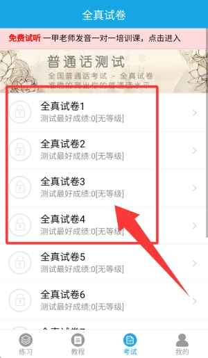 3、专业发音评分系统:运用和普通话水平测试相同的发音评分技术,搭配全真考试试卷,每个发音都能实时测评,做到边练边测、即时纠正,不断提高发音水平。