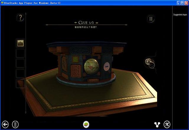 32、视角转一下,按照下图所示:用铁针打开面板,看到一个可移动装置,用目镜观察,移动滑板并转动圆柱,使其成为图形,便得到一徽章。
