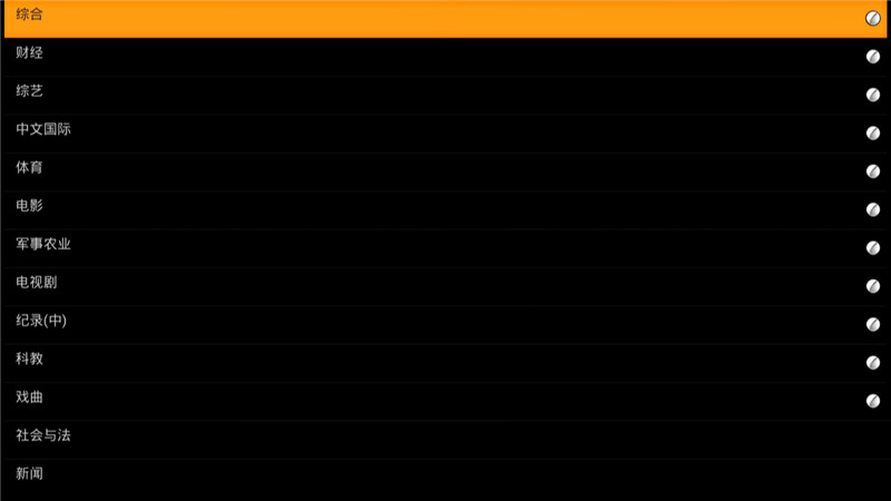 软件很简单,打开后是一个黑底白字的频道列表。右边圆形的图标没有功能,估计是为了使左右有东西对称好看些。