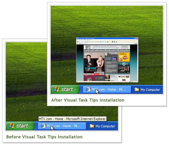 Vista有一个功能,是可以让我们将鼠标游标移到工具栏的项目上,就会显示出该视窗的内容.现在,只要安装了 Visual Task Tips 让我们的 Windows XP 也能有同样的效果了,Visual Task Tips 是非常洁简,且易于使用的,需要任何设置调整,只要安装到我们 Windows XP 操作系统上,就可以达到跟 Vista 同样的任务栏效果,而且,它还是个免费的软件.