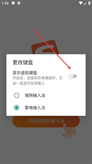 3、在更改键盘弹窗中开启【显示虚拟键盘】的开关。