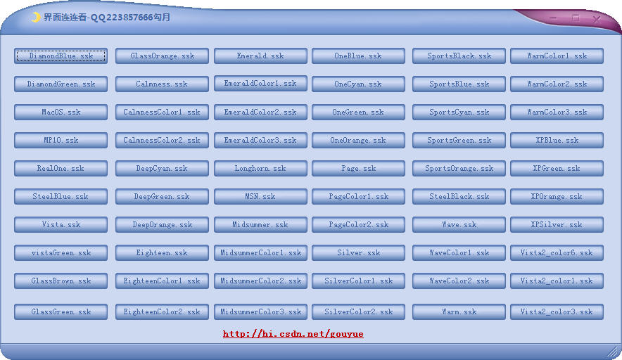 4. 再在项目中调用.ssk皮肤文件或者在属性:skinfile中选择皮肤文件。例:
