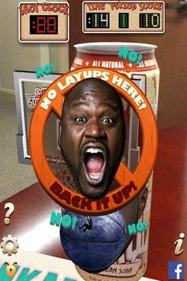 大鲨鱼苏打水篮球 Soda Shaq Basketball是一款篮球竞技类的手机游戏。大鲨鱼苏打水篮球安卓版其设计还是挺有创意的,它的主要目的并不是娱乐,而是为奥尼尔代言的一款苏打水打广告。游戏需要扫描产品才能玩,很不错的推销手段。