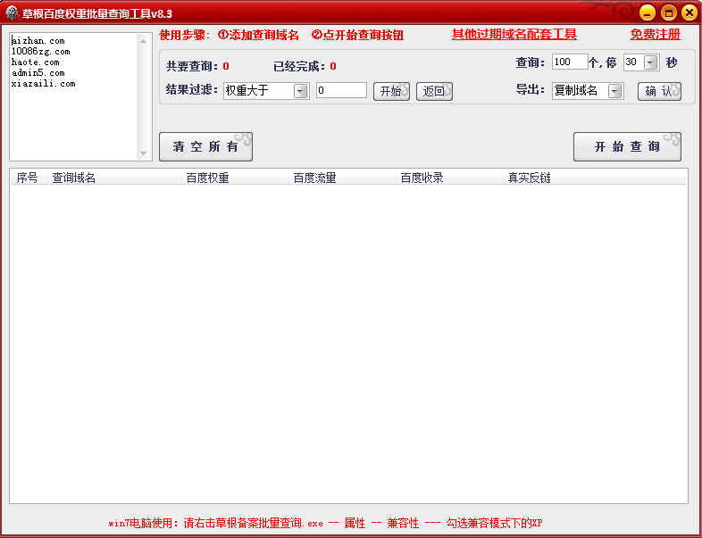 1、支持多网站域名批量查询。2、查询速度快,稳定数据准确。