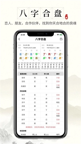 1、简洁易用:国内知名命理师参与指导开发,界面清晰、操作简单,新手也能轻松上手。 2、专业免费:涵盖干支、十神、五行、大运等专业命理信息,所有排盘与分析内容均可免费查看。