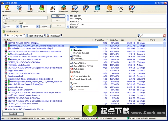 eMule 0.49c Beta2 多国语言绿色免费版 eMule通常被称为“电骡”,与eDonkey相比,eMule更像是一个替代品。它拥有许多eDonkey所不具备的特性。因此,许多网民都在用eMule分享各种资源。eMule是一个完全免费且开放源代码的P2P软件。利用他的卓越特性,我们可以与全世界的网友共同分享资源,下载和发布最新的资源,充分享受自由共享的乐趣!