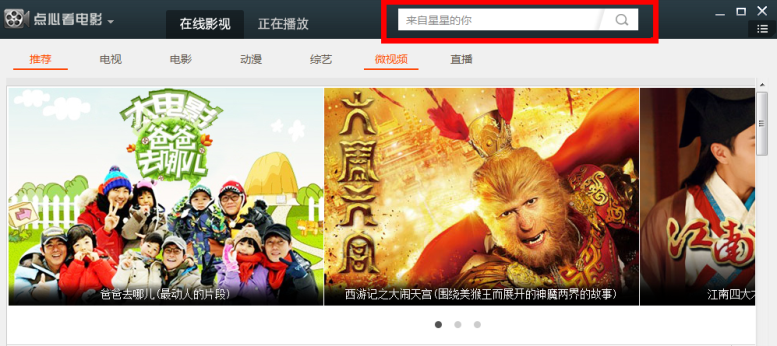 在搜索框内输入影片名称、演员名或者导演名,可以简单方便地找到自己想看的影片。如下图所示: