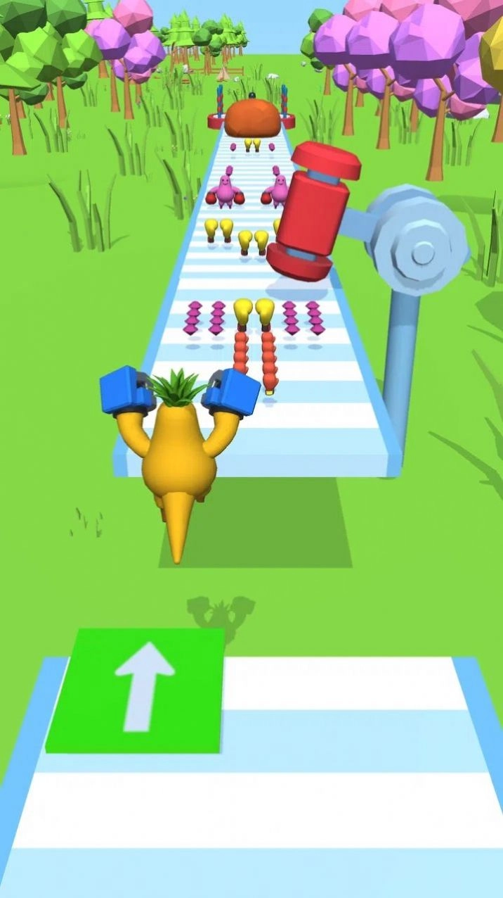 2、带来欢乐又精彩的游戏体验,在疯狂跑酷的过程中,收集各类道具来升级茄子怪物;