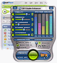 DFX for REAL V8.501 汉化绿色特别版 DFX 是音频效果插件的佼佼者。作为一个专业的 DSP 音频效果插件,它特别是在低音部分和空间感改善了很多。DFX 是 Power Technology 公司出品最新版的软件。这个是 for RealPlayer 版本,不能安装于其它软件