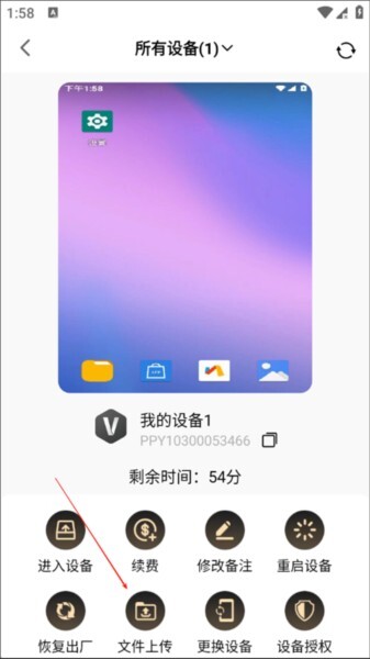 5、点击上传文件可以将游戏导入云手机