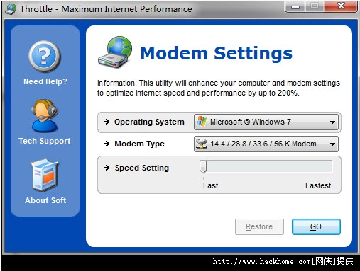 网络加速Throttle下载 7.3.31.2014 官方版 Throttle是国外出的一款免费网络加速工具。Throttle网络加速器永久免费版支持4.4/28.8/33.6/56 kb,Cable Modems DSL modems,还可以调节Modem的相关设定。网上流传上网速度可以提升2倍的速度,号称全世界最牛加速软件。想要知道究竟能多快的,就赶快下载体验吧。